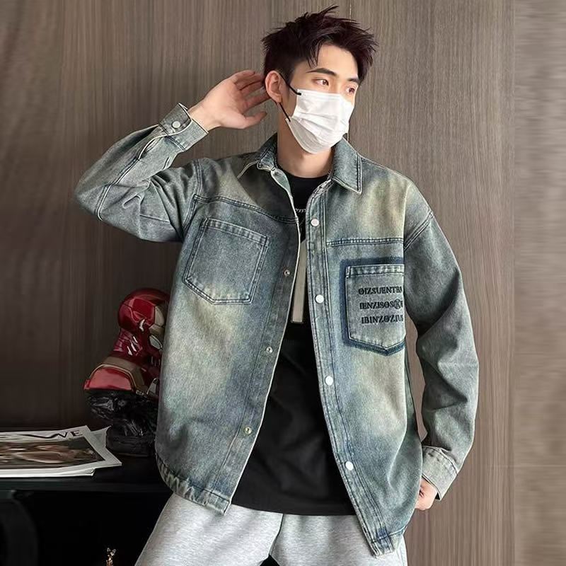 The loose fit vintage turn-down collar men’s jean jacket is a perfect blend of casual comfort and timeless retro style. With its relaxed silhouette and aged denim wash, this jacket reflects both functionality and fashion — making it an essential addition for wholesalers and fashion retailers looking for authentic men’s denim outerwear.